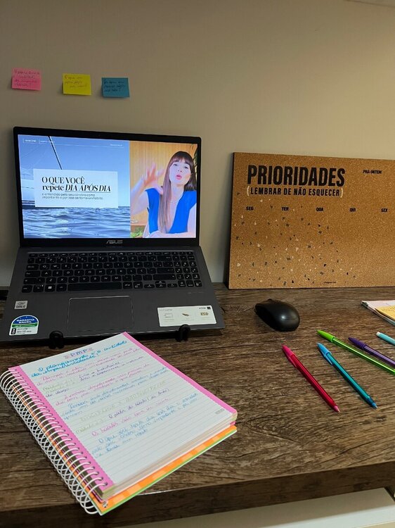 Sempre fui bastante organizada com a minha rotina (exercicio, alimentação, trabalho, relacionamentos), entretanto desde o fim do ano passado tenho dado uma de Zeca Pagodinho e deixei a vida me levar adquirindo maus hábitos como comer qualquer coisa , pior na frente da TV, perder HORAS em rede social e no fim da gestação já não podia fazer exercícios. Essa falta de uma rotina boa e saudável tem me feito falta principalmente após o nascimento do meu amado filho, que demanda muitos cuidados por causa da idade e tenho a impressão de não fazer nada por mim ou nada produtivo. Por isso, que estou fazendo o método PMP e já estou adequando algumas coisas a nossa rotina como ter uma diarista uma vez por semana e fazer o mercado via aplicativo que são coisas que estão me demandando tempo, pois tudo que faço tenho que incluir meu filho por ainda amamenta-lo em livre demanda. Outro hábito que estou encaixando são exercícios em casa de 15 a 20 minutos diariamente e reeducação alimentar. Só com essas pequenas alterações já estou vendo melhorias na minha rotina. Vamos lá herdeiras ,que rotina sem metas são sonhos!!🚀🚀🚀1 ponto