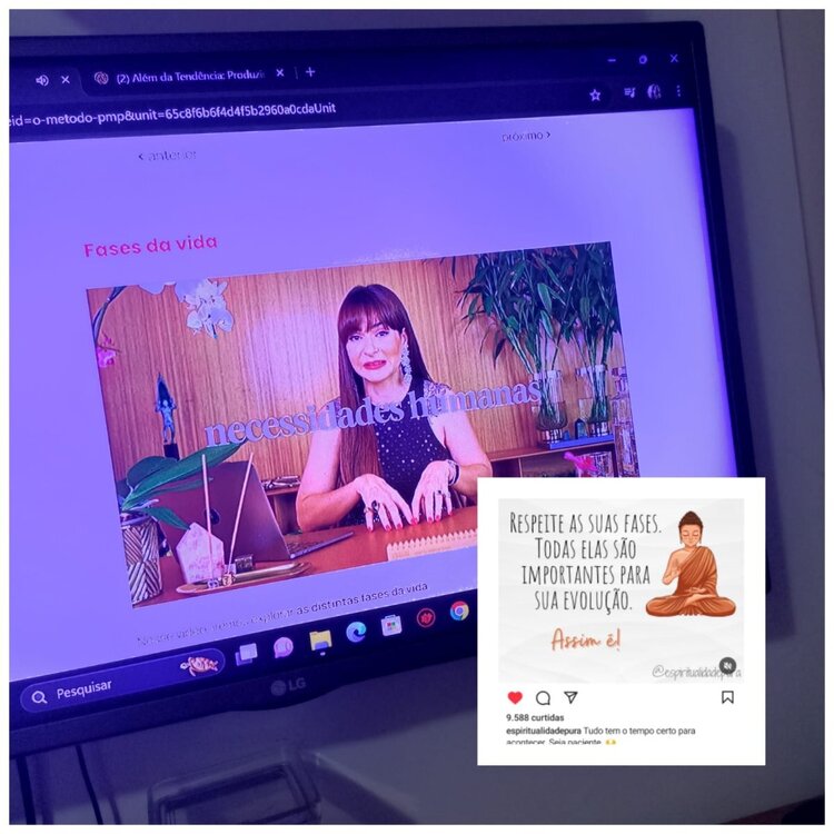 Ontem (16/06) cheguei na aula FASES DA VIDA (5.4) e sigo uma página sobre espiritualidade onde diariamente é postado o mantra para aquele dia e eis que o mantra de ontem era "Respeite as suas fases. Todas elas são importantes para sua evolução!" A sincronicidade do universo e suas mensagens tem enorme significado para minha vida. Mais um motivo de amor pelo PMP ❤️🌱🍀1 ponto