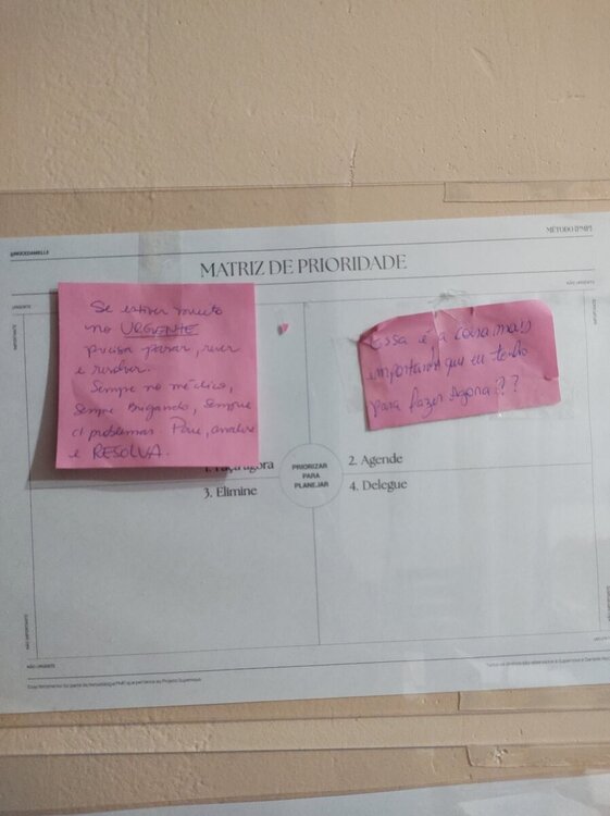 Olá, Herdeiras!!! Eu terminei as aulas do PMP essa semana e fiz o meu primeiro planejamento semanal e vim aqui compartilhar um pouco com vocês. Eu me casei ano passado e acreditava que logo fosse engravidar. Meu marido trabalharia e eu seria dona de casa e mãe. Só que isso não aconteceu. Então 6 últimos meses de 2023 foram de muito sofrimento e de quebras de expectativas. E sempre pensando, eu não posso começar nada, porque se eu engravidar terei que parar. Quando começou 2024, eu decidi que iria fazer outras coisas. Comecei a fazer pilates, porque eu tinha engordado e queria pelo menos começar a fazer exercícios. Comecei meu curso de costura e lancei o meu negócio de venda de bolos. Tirando a aula do curso que eu estava fazendo e o pilates, a minha vida antes do PMP se resumia a acordar, fazer café e levar meus cachorros para passear, alimentar eu e meu marido e o resto do dia eu passava vendo series ou filmes. Eu "montei" meu negócio, mas não estava trabalhando nele. Estava apenas deixando a vida me levar e fazendo o básico da sobrevivência. Apesar de tudo, só esse pouco que eu estava fazendo, já vinha me deixando com mais vontade de fazer mais. Eu fazia o pilates duas vezes na semana e já estava me organizando financeiramente para começar a academia também. Mas a parte do trabalho era bem difícil para mim. Eu me sentia muito perdida, sem saber como fazer. O dia que eu quis entrar no PMP e preenchi meu formulário foi um momento muito aleatório. Eu estava fazendo meu xixizinho, vendo os stories da Dani e com uma leve dor de estomago. Naquele momento eu me sentia perdida. Eu estava matutando na minha cabeça se deveria marcar médico de novo ou não, porque da ultima vez que fui, senti que não fizeram nada para me ajudar. Senti que muitos exames estavam faltando e com o pouquíssimo do que eu já havia estudado sobre saúde em geral eu conseguia perceber. E porque esse momento me inspirou a entrar no PMP? Porque a Dani estava respondendo sobre a saúde dela nos stories e eu pensei, eu preciso conseguir lutar pela minha saúde como eu vejo a Dani fazendo. Eu preciso tomar as rédeas. E eu vi no PMP algo que poderia me ajudar. No dia 21 de maio eu entrei oficialmente para o PMP. Fiz algumas aulas nessas semanas, mas já estava começando a procrastinar de novo. Ai veio o desafio de junho, e quis e quero ganhar, então comecei a pegar firme nas aulas, pegar firme nos exercícios, me programar para realizar a lista inteira do bingo. E cada dia que eu seguia com as coisas que tinha me programado a fazer, mais eu conseguia. Mais eu vencia a procrastinação e me entregava. Ter entendido em que fase da vida eu estava e ter feito a roda da vida, me transformou. Eu entendi exatamente quais áreas precisariam ser trabalhadas naquele momento. Eu estou na fase um da vida. Eu sou um pouco herdeira. Tenho um apto e carro próprio que foram presentes do meu pai e ele ainda me dá mesada. O que complementa a renda da casa, visto que meu marido está em transição de carreira. Então enquanto ele estuda e trabalha para ganhar mais, eu também preciso focar nessa área. Pois temos uma base sólida, mas não foi construída por nós. Naquele momento eu sabia o que eu precisava fazer e qual era área de atenção na minha vida. Então veio todo o restante do curso, muito aprendizado e ferramentas maravilhosas. E por fim eu decidi escrever apenas uma meta. Um plano de ação. Um foco total até o fim do ano. Conseguir três clientes fixos em seis meses. Fiz as analises marte e fofa, fiz o plano de ação no notion, fiz o método PMP, em baixo terão as fotos do meu cantinho que de agora para frente verá muito trabalho e ação. E aqui eu firmo meu compromisso público de cumprir com as tarefas que levarão a realização da minha meta. E também de manter os hábitos que estou adquirindo. Obrigada @Dani Noce e @Bia Henriques por esse curso maravilhoso. Vocês me entregaram o ouro e agora eu poderei fazer a minha joia. Esse aqui é meu moodboard das metas, coloquei a maquina de costura, que é o plano que eu meu marido fizemos para comprar juntos. A minha meta que é conseguir clientes, representada pela agenda cheia. E uma foto antiga minha, para o corpo que eu quero voltar a ter. Ela está ali para que quando o desanimo bater eu me lembre o motivo pelo qual eu tenho me exercitado todos os dias. E a palavra do ano foi "começar". Foram as pequenas coisas que eu comecei a fazer que me trouxeram aqui. Foi escolher entrar no curso. Foi escolher começar. E eu sou muito grata a esse começo.1 ponto