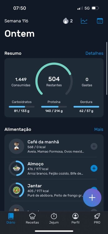 Boa tarde, Herdeiras. Ontem, 18/07, foi meu segundo dia. Foi mais tranquilo no quesito organização e distribuição das proporções ao longo do dia. Nesses dois dias de desafio bati a quantidade de 3 litros de água e não consumi nada com açúcar. Meta de consumo diário: 147g de proteínas, máximo 87g de gordura, 90g de carboidrato, máximo de calorias 1.953. MACROS BATIDOS: 140proteína; 81g carboidrato; 62g gordura; 1542 calorias. PESO: 69,1kg. Eu assustei quando vi 1kg de diferença na balança de um dia para o outro 😱. Hoje vou fazer por onde consumir minha quantidade de calorias de manutenção (2.170calorias). Conforme a Dani comentou nos stories e observar se diminui no próximo dia ou se mantém. TREINO: Aula de pilates 125 calorias FOTOS:1 ponto