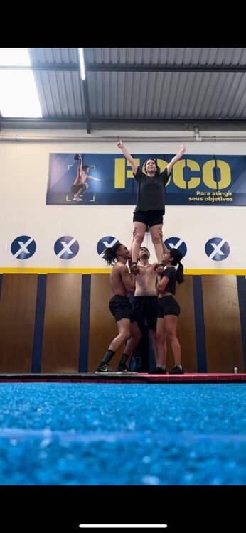 Confesso que está sendo bem difícil voltar pra academia. É algo que eu realmente não gosto, mas tenho visto muitos resultados positivos no meu corpo e PRECISO continuar. Aqui fica meu compromisso de voltar amanhã com foto depois do treino. Mas hoje felizmente eu me movimentei bastante. O treino de cheer é bem intenso e ainda realizei um sonho. Subir como flyer.1 ponto