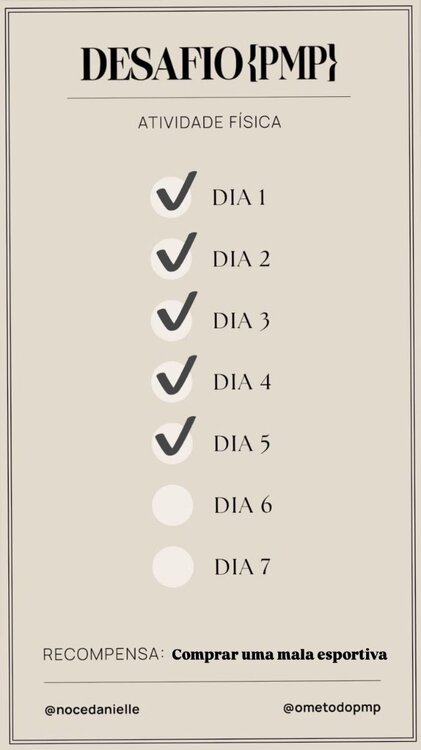 Olá Herdeiraaas, tudo bem? Cada vez mais que sigo pelo curso do método do PMP, mais entendo porque foi criado a comunidade aqui! Eu ainda não sou muuuuito frequente, mas é uma das partes que quero colocar foco, porque sei que isso fará diferença. Nessa aula mencionada no título, nos desafiava a vir aqui e compartilhar com vocês e fazer um compromisso público do meu desafio. Eu escolhi o desafio do exercício físico e coloquei o nível light (7 dias), coloquei como desafio fazer 40 minutos de caminhada. Me enrolei desde segunda para sentar e compartilhar com vocês, mas como mencionei é algo que preciso focar mais e aqui estou. Tenho mais dois dias para finalizar essa primeira etapa do desafio! SIM PRIMEIRA, porque depois dessa com certeza continuarei a me desafiar! E estou muito feliz por essa primeira semana de desafio! E agora boraaa que ainda tem mais dois dias para concluir. 👊🤩1 ponto